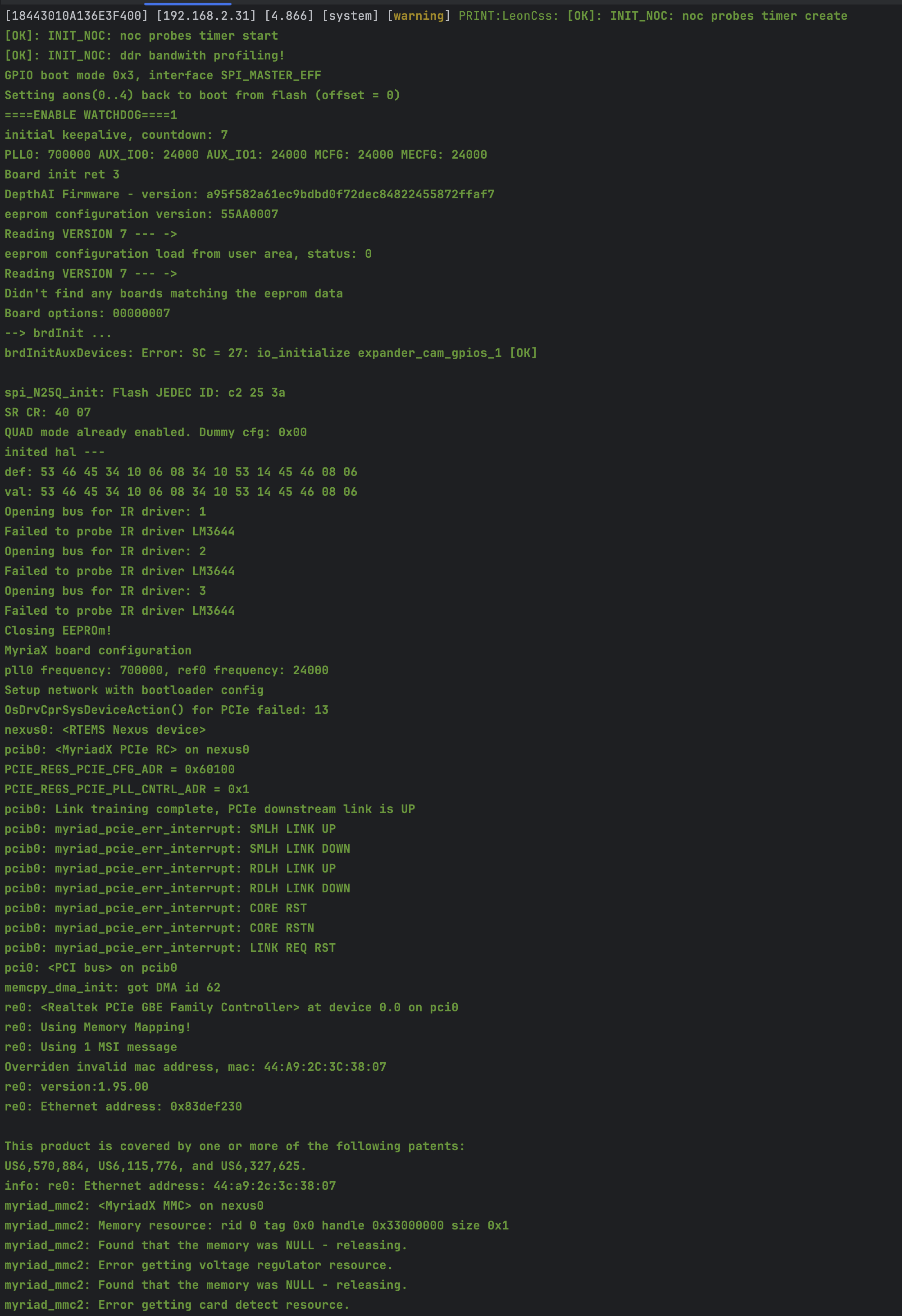 [18443010A136E3F400] [192.168.2.31] [4.866] [system] [warning] PRINT:LeonCss: [OK]: INIT_NOC: noc probes timer create