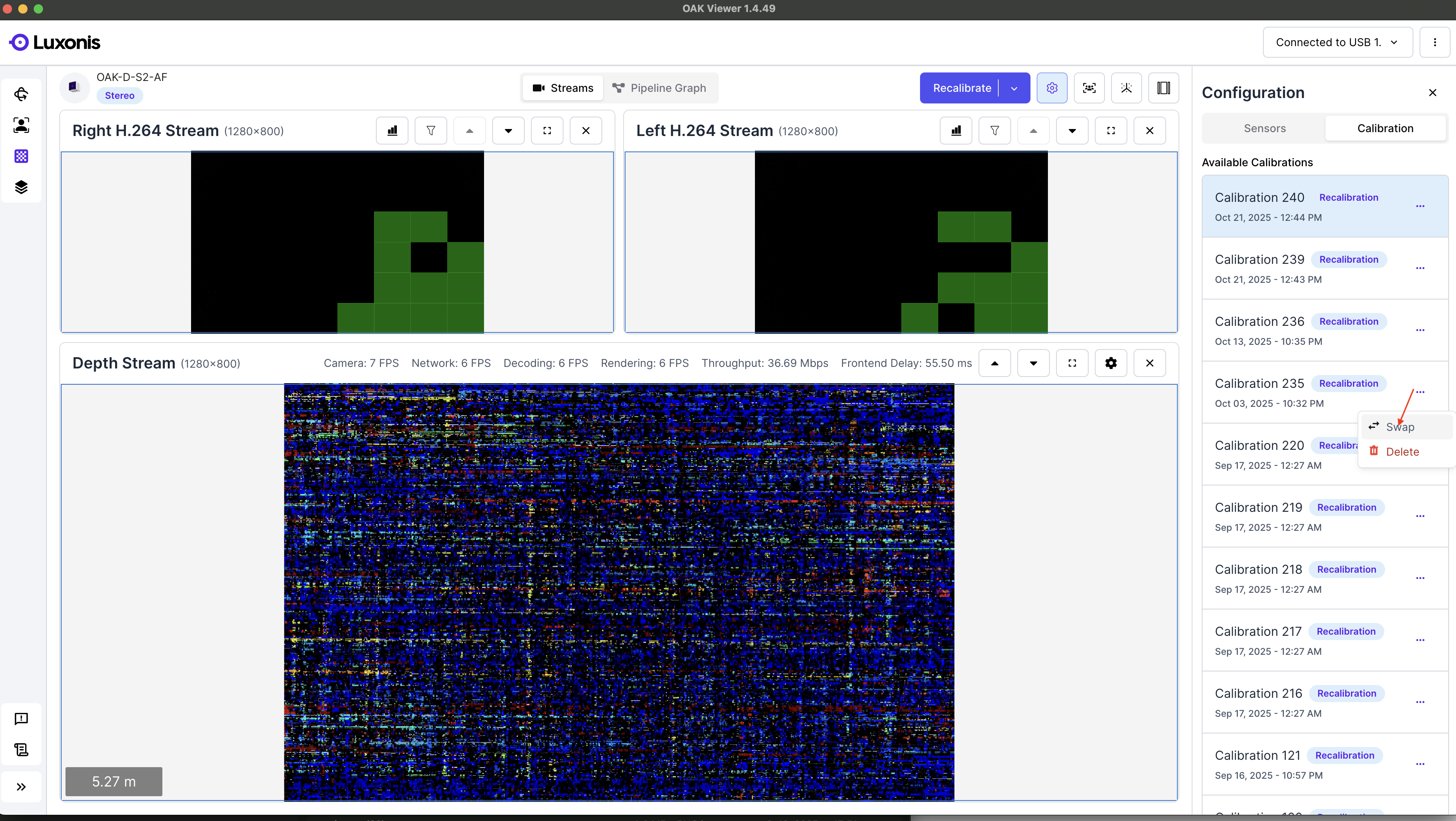 When complete, you'll see whether the camera "Needs Calibration" (upper left corner).