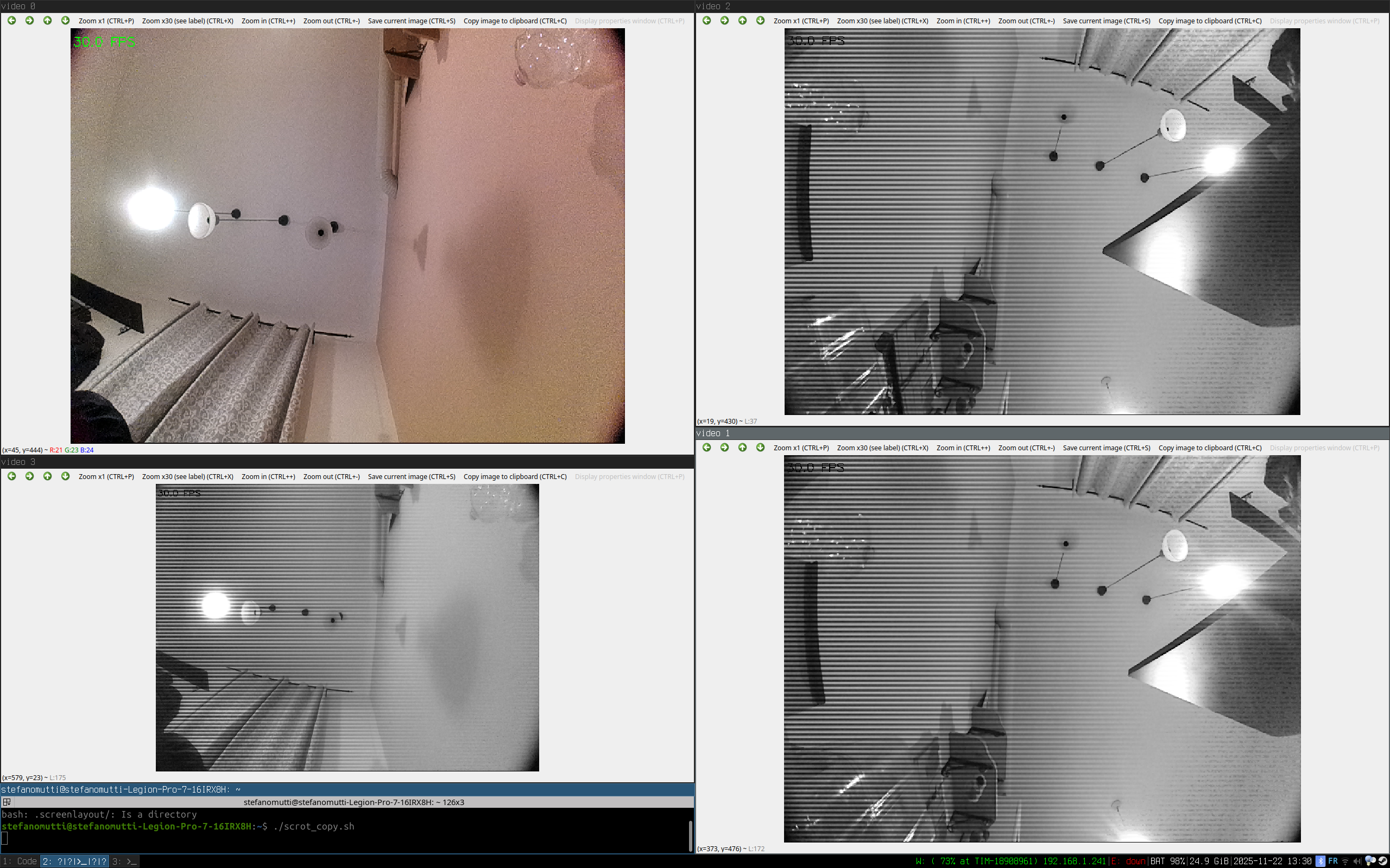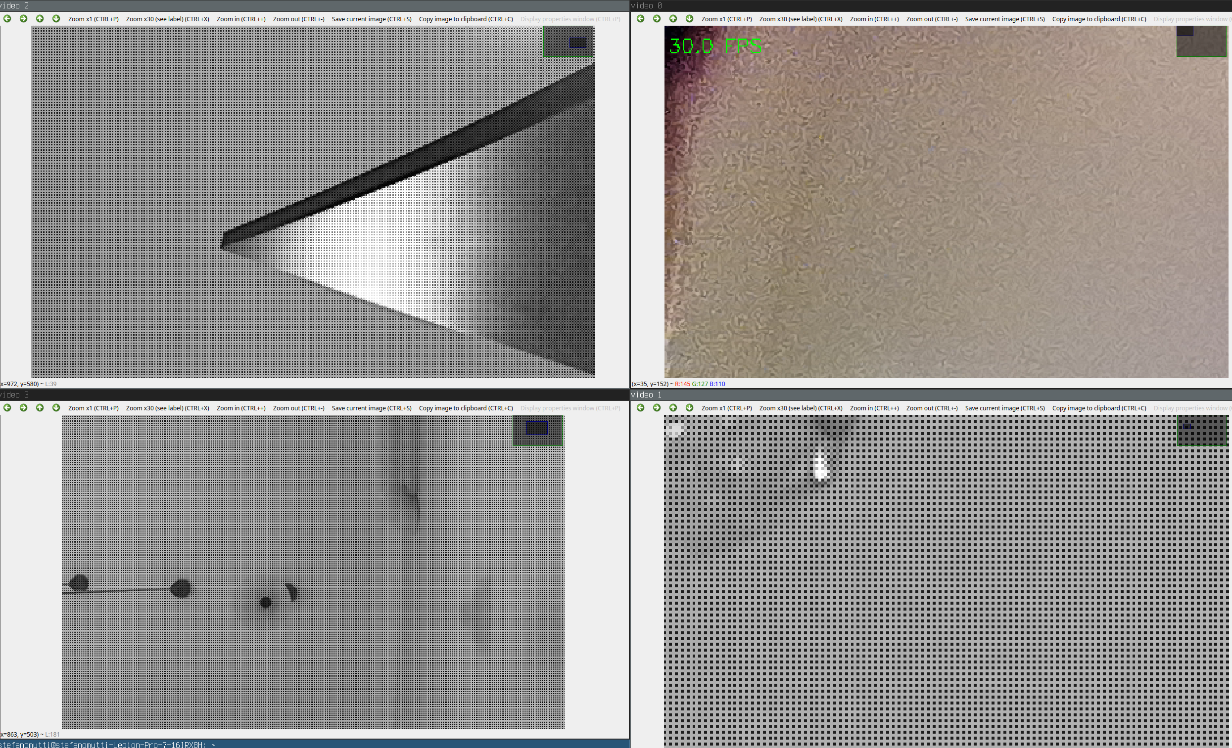 Even if i write my own code to get all 4 the images i still get the same, 1 camera works kinda well, the other 3 are black and white with black dots.