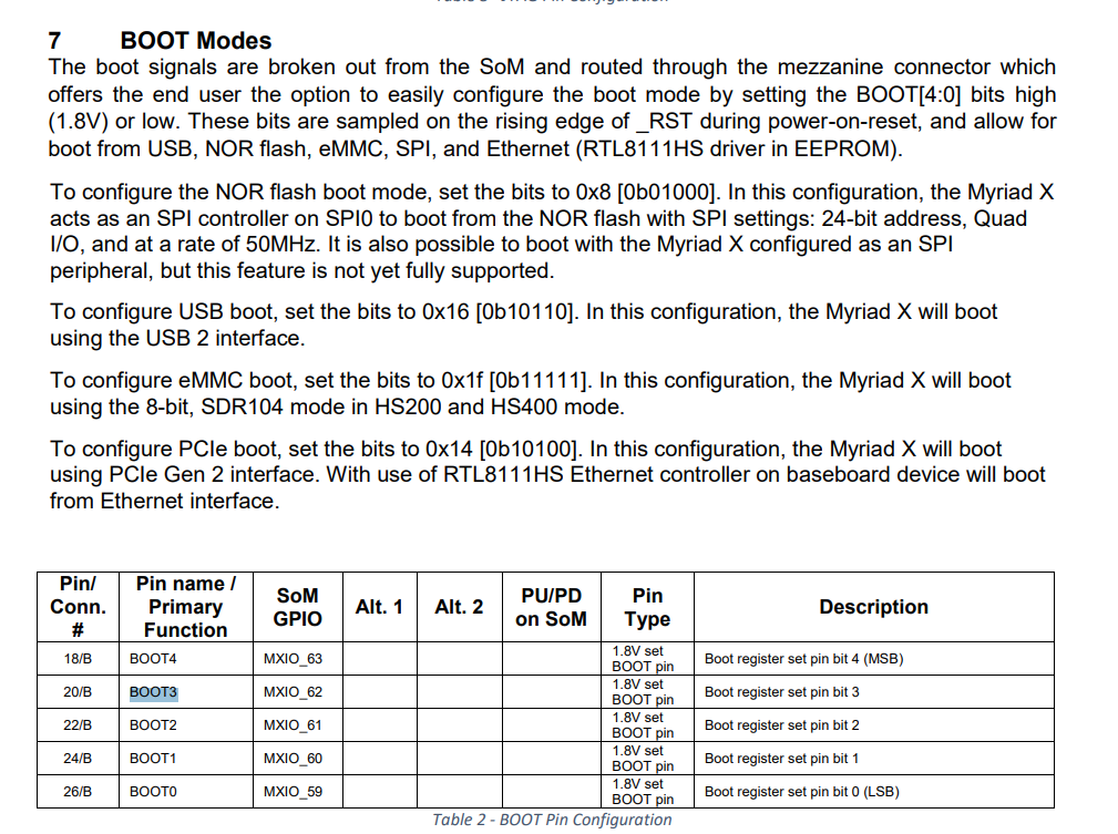 I'm making a carrier board for the Oak Som Pro and I'd like to hard wire the BOOT pins to boot into the NOR Flash bootloader. Couple questions: